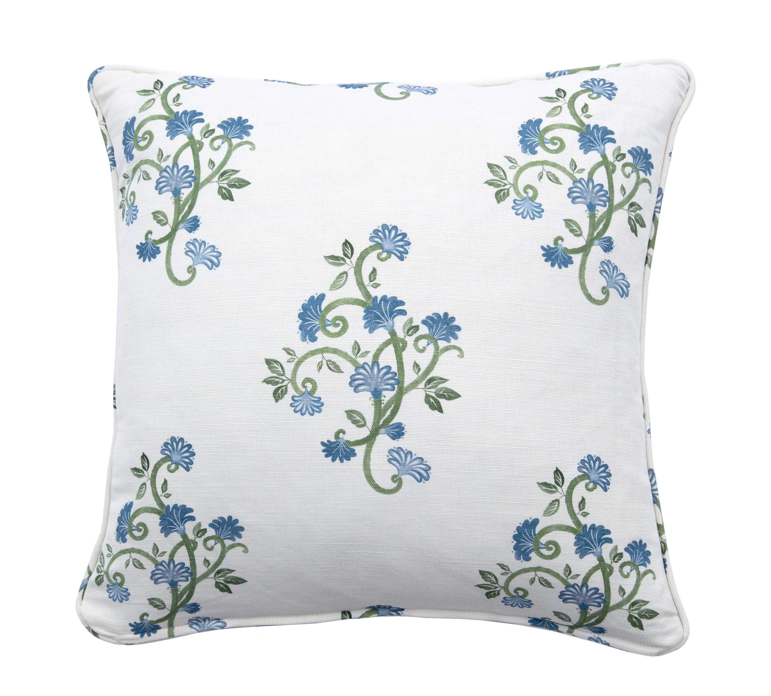 Blue & Green Floral Cushion with Piping - Anne