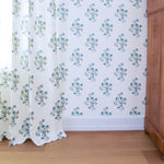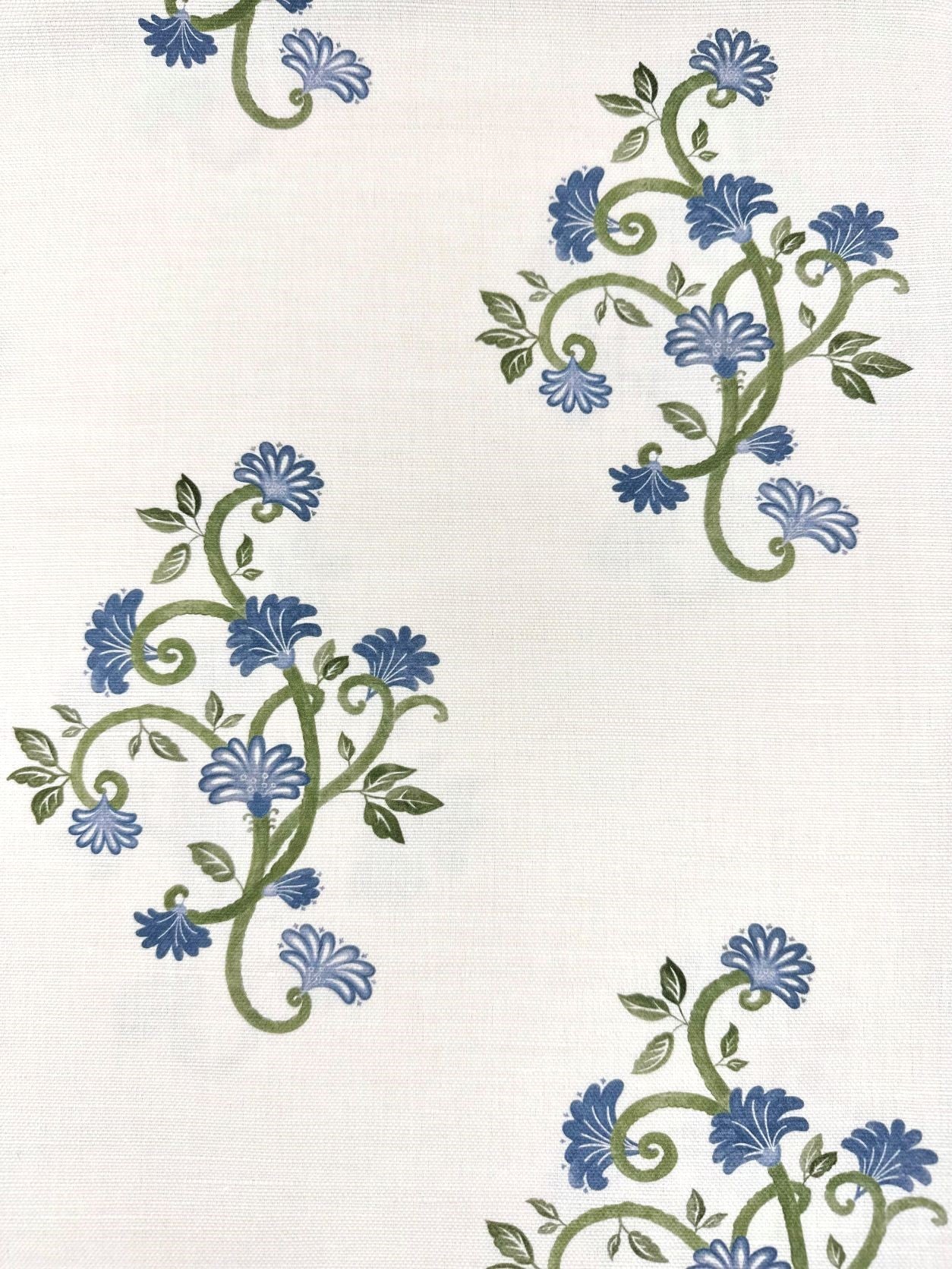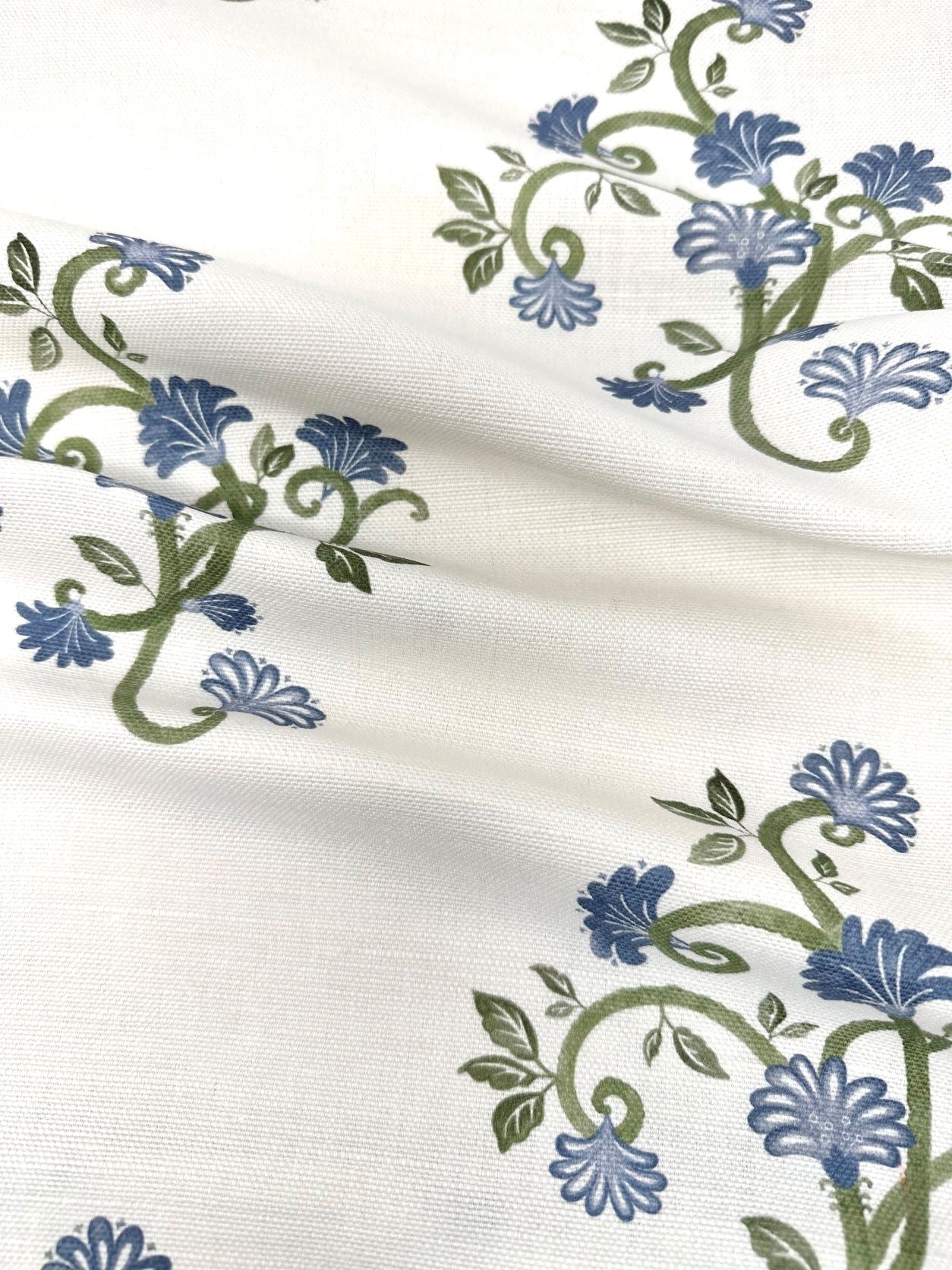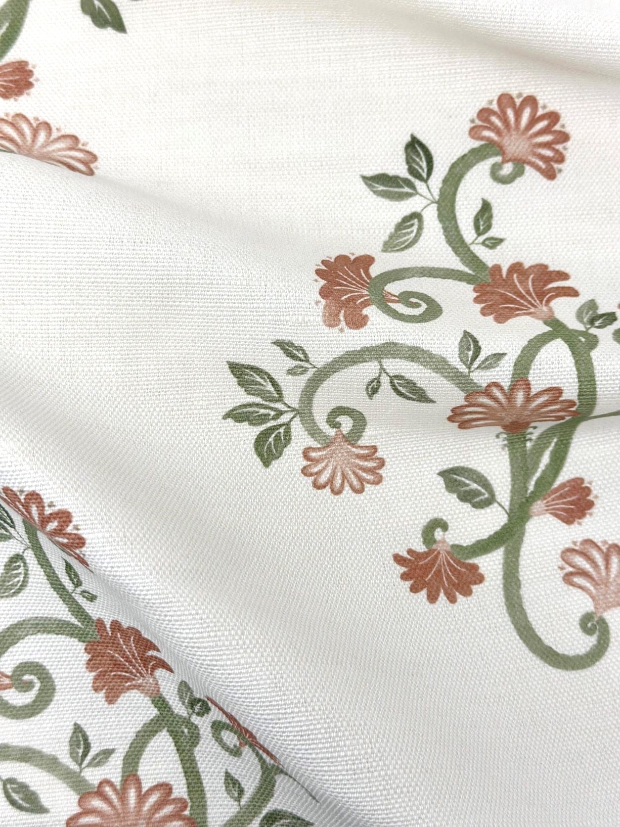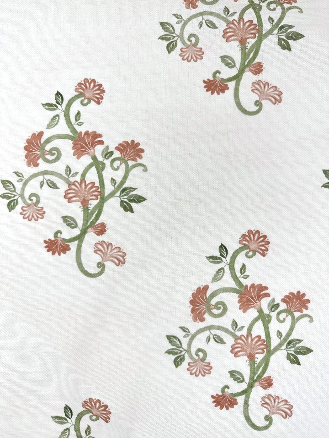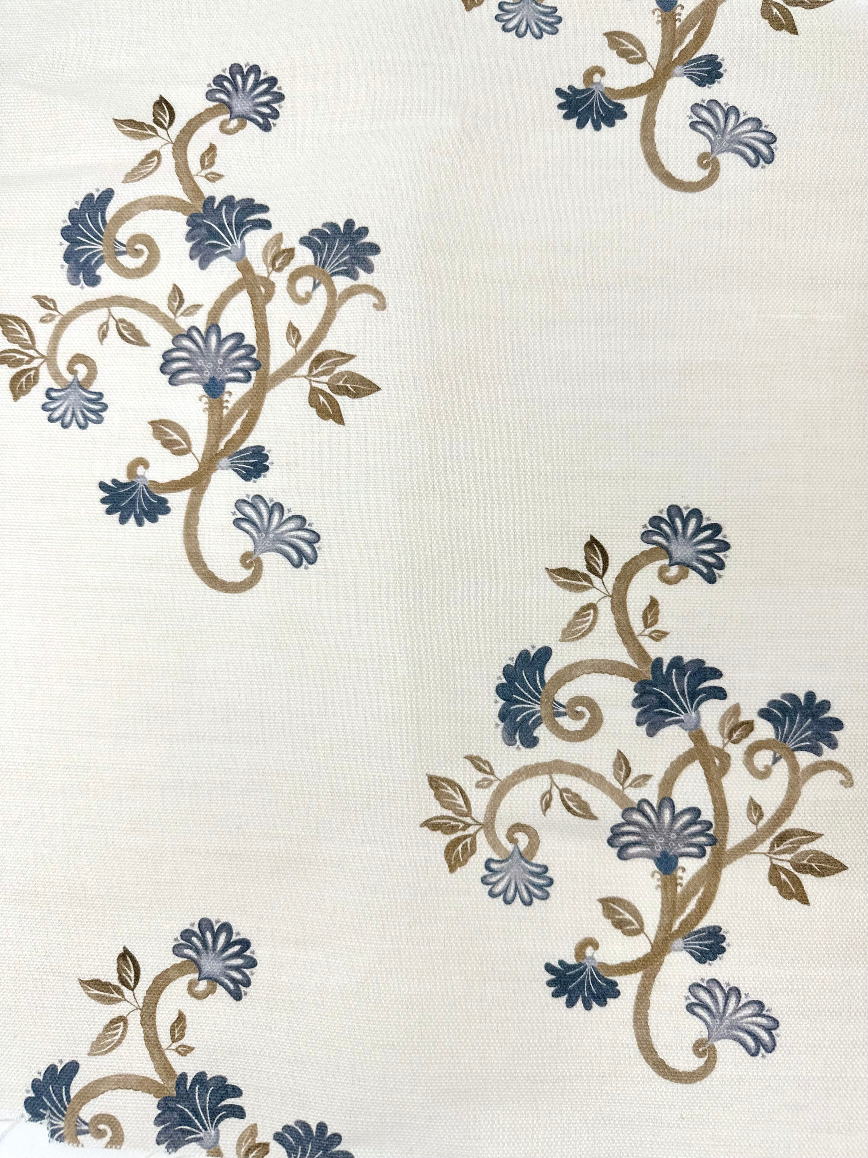 This elegant floral fabric is printed on the finest linen-blend, excellent for adorning cushions, curtains, and other home decor pieces.