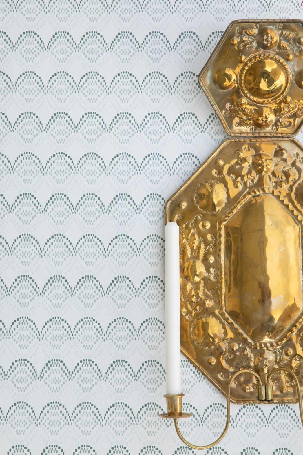 The inspiration for this striking wallpaper design was taken from one of the many beautiful wall-hanging textiles, hand-woven by Gyri’s great-grand mother, Kristin, a long time ago. This pattern is named after her.